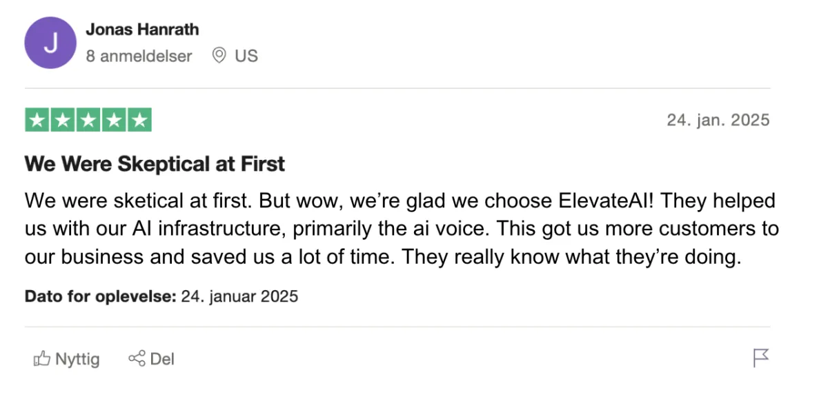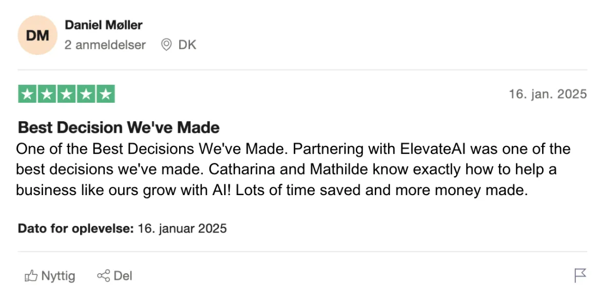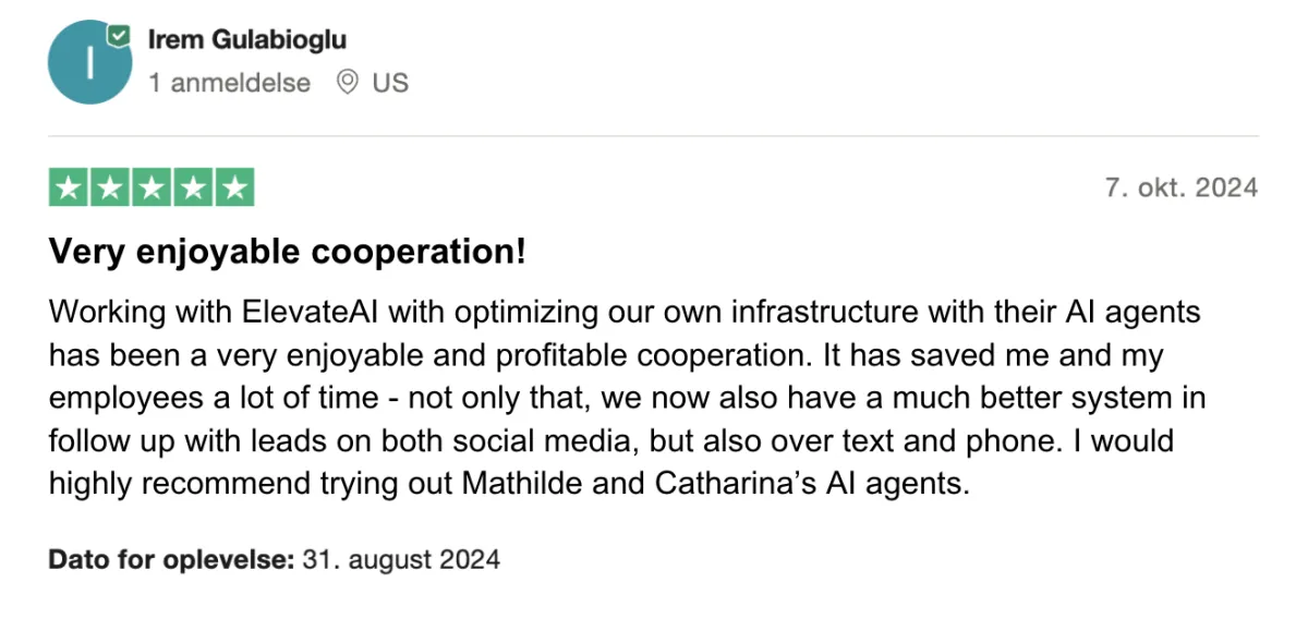 Whether you need AI for sales, customer support, or similar - we’ve got you covered. Book a no-binding meeting with one of our founders, Mathilde. She’ll assess your business and create a personalized demo if we see real potential. We only work with businesses we know we can deliver results for—that’s why we offer a no-risk guarantee.